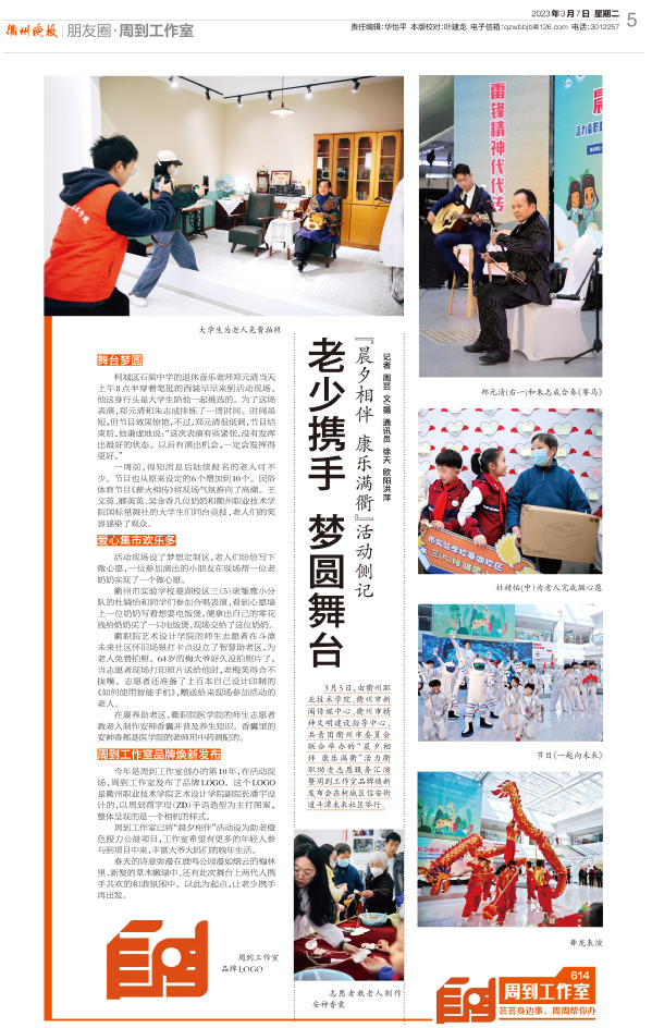 3月5日,由AK体育客户端、衢州市新闻传媒中心、衢州市精神文明建设指导中心、共青团衢州市委员会联合举办的“晨夕相伴 康乐满衢”活力衢职助老志愿服务汇演暨周到工作室品牌焕新发布会在柯城区信安街道斗潭未来社区举行。