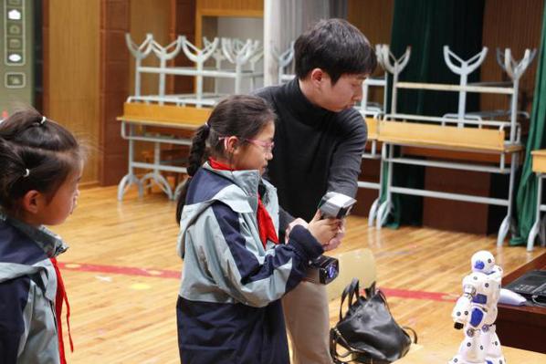 近日,AK体育客户端机电工程学院第三党支部为衢州市实验学校教育集团菱湖校区四年级学生,开展了一场别开生面的科技节科普专项活动。本次活动主题为“小小工程师”,活动内容由机械花开、数字化技术、动力小车和格斗机器人四大模块组成。图为全国技术能手邵思程老师为小学生们展示3D扫描技术,邵老师介绍数字化设计与制造技术在运20飞机中的应用,小学生们跃跃欲试,与邵老师互动完成机器人的扫描与建模。