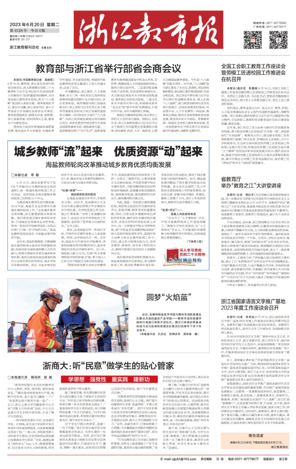 《浙江教育报》头版 2023年6月20日 报道 本报通讯员 孔庆红 欧阳洪萍 吴依宸 摄
