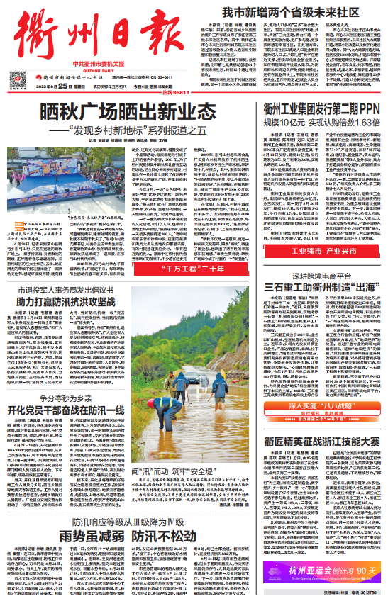 《衢州日报》 2023年6月25日 头版报道 本报讯 记者 毛慧娟 通讯员 陈琪 王晓乙