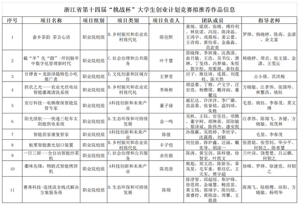 根据浙江省第十四届“挑战杯”大学生创业计划竞赛工作要求,AK体育客户端组织开展了挑战杯作品申报工作,经各二级学院组织申报、专家综合评审,现将拟推荐省赛作品进行公示。公示时间2024年3月13日-3月15日,共3天,联系电话:8068210。