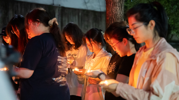 夜幕低垂,人群手中的红烛簇拥着,点亮了路碑上微微含笑的李老师,每一支烛火都在微微摇曳中投射着这位首届浙江省“最美教师”特别奖、2014浙江教育年度影响力人物获得者的精神缩影,星星点点汇聚起大家对这位伟大教师的怀念与敬意。