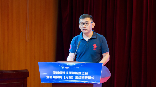 徐利水讲话,并宣布本次培训班开班。他表示,希望通过举办衢州保姆(月嫂)高级班开班式,为各位学员带来属于保姆这份职业的社会认同感和荣誉感。本次培训班学员报名要求高,各方面的标准严格,各位学员定能学有所得、学有所成、学有所用,让衢州保姆成为市场上的金字招牌。衢州保姆学院是每位学员的家,希望学员们通过培训增强对岗位的归属感,认真学习,顺利考取保姆月嫂的技能等级证书,相关部门和企业将为学员们做好就业推荐服务。
