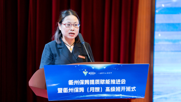 李庆荣讲话。他表示,衢州保姆提质赋能,要贯彻落实好《浙江省家政服务条例》,深刻认识条例实施的重要意义。按照省里的统一部署,狠抓条例的宣传贯彻落实工作,加快家政数字化提升,做好家政双码管理和诚信体系建设,合力推动家庭服务业提质扩容。要加大有效供给,加大跨区域劳动协作。发挥好协会、头部家政企业、培训机构的作用,积极与省外建立劳务协作,加强省内农村劳动力、城市剩余劳动力技能提升和家政人员从业培训。要完善提升家政服务标准,进一步规范家政管理。提升服务能力,加快完善制定家政进社区、家政职业化技能提升等相关标准。在衢州月嫂服务规范市级地方标准的基础上,进一步优化升级到省级标准,增强保姆行业工匠精神内涵。要加强家政服务机构的品牌建设,加大对领跑企业的支持力度。积极培育和引进知名家政品牌,开展“巾帼家政”“最美家政人”选拔认定工作和劳动技能竞赛活动,推动我省家政提质扩容。