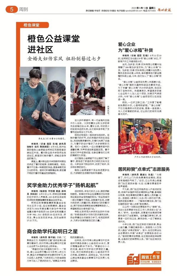 《衢州晚报》2024年8月13日 报道 记者 周芸 文/摄 通讯员 张锦平 徐天 欧阳洪萍