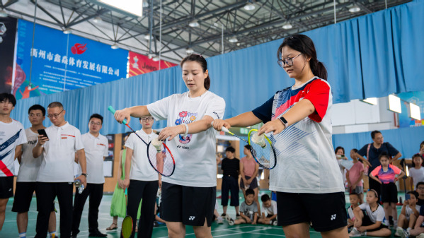 黄雅琼对学校体育教育师资实力雄厚,梯度、结构合理,青年学生朝气蓬勃、阳光向上印象深刻。她表示,学校营造了以体育人的良好氛围,让她倍感亲切,深受感动,希望未来继续增进与学校交流,经常与师生们切磋球技,共同探索人才培养的新路径,推动羽毛球事业高质量发展。