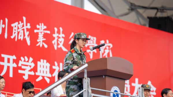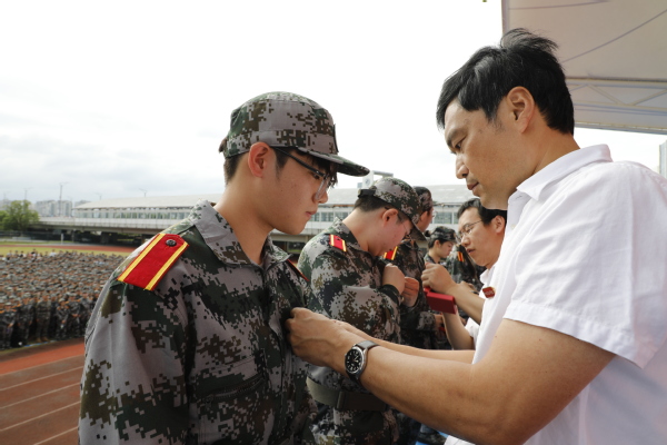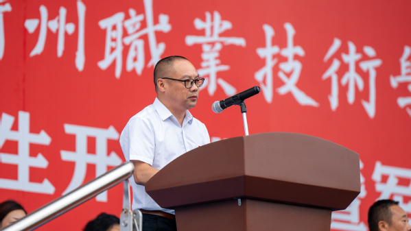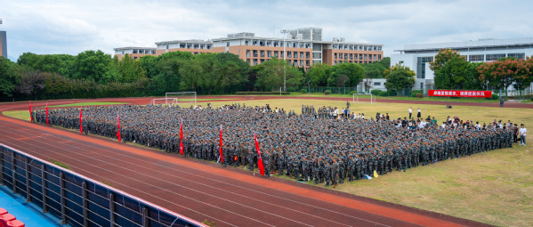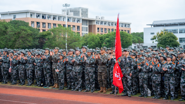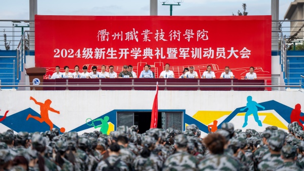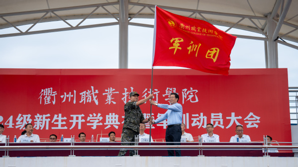 吕延文讲话。他代表全校师生员工,对2807位新同学表示热烈的欢迎!向新生们的家长、老师致以崇高的敬意!向承担本次新生军训任务的全体教官表示衷心感谢!他希望,广大青年学生要勇立“鸿鹄之志”,将“专业”融入“事业”,成长为筑梦强国的衢职人。把专业理论与实践探索结合起来,把专业所能与事业所需结合起来,把个人进步与国家发展结合起来,成长为强国建设的中流砥柱。要锤炼“工匠之技”,将“技术”融入“技能”,成长为技能报国的衢职人。努力践行“尚德弘毅,知行合一”的校训,从专业中学习技术知识,在实践中掌握技能本领,努力成长为可堪大用、能担重任的栋梁之材。要常怀“赤子之心”,将“小我”融入“大我”,成长为胸怀家国的衢职人。厚植家国情怀,淬炼青春本色,跳出“舒适圈”,打破“天花板”,不“躺平”、不“摆烂”,把个人理想追求融入党和国家事业之中,争当“强国有我”的“新时代好青年”。