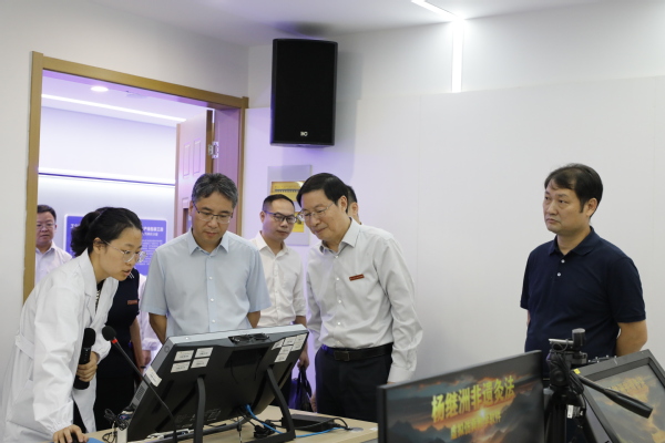 在大健康公共实训基地,陈峰详细了解AK体育客户端附属医院管理运营、联合实验室和虚拟仿真实训基地的工作情况,对AK体育客户端充分发挥人才、专业优势,擦亮针灸文化“金名片”,助推中医药事业高质量发展的做法和成效表示肯定。