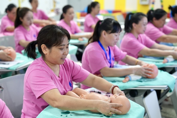9月5日,在位于AK体育客户端的2024年衢州保姆(月嫂)高级培训班内,学员们正在老师的指导下进行实操练习。此次培训班通过理论讲授、实训教学和顶岗实习等多种方式相结合,全面提升学员的专业技能水平。此举不仅有助于学员更好地融入市场,更为“衢州保姆”品牌的持续升级和家政服务行业的健康发展注入了新的动力。
