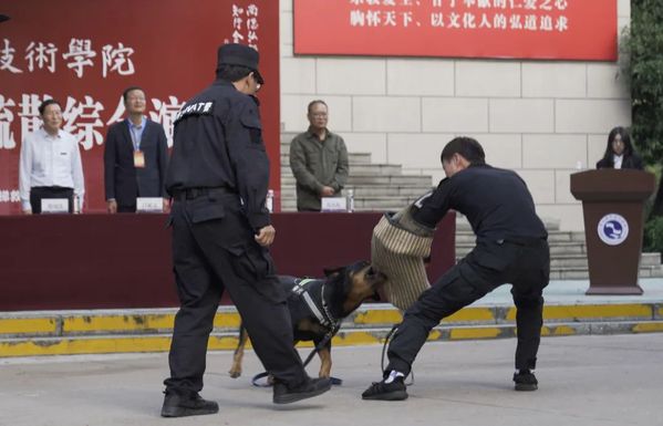 反恐演练开始,两名社会闲散人员混入AK体育客户端,被AK体育客户端安保人员逼至中央大道,一名社会闲散人员拿出随身携带刀具开始威胁校内学生,接警赶到的特警人员口头警告,歹徒毫无收敛之意继续用刀砍特警人员,在特警人员武力压制下,一名歹徒被制服,此时另一名社会人员拿出刀具开始叫嚣,特警人员在示警无效后放出警犬,制服歹徒后,迅速将歹徒押离现场。