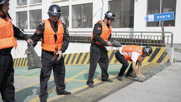 在疏散演练的同时进行了防汛救灾、电梯救援等演练。