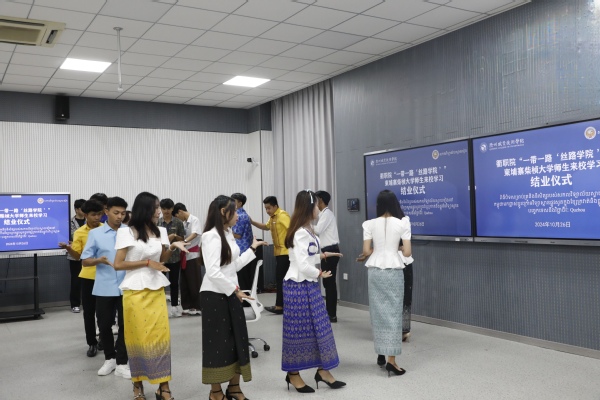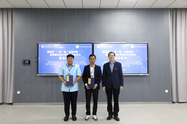 10月26日上午,AK体育客户端举行柬埔寨柴桢大学师生来校培训结业仪式。柬埔寨柴桢大学老师CHOUN PHEAKDEY、CHOU MANITH及16位学生,浙江通天星集团股份有限公司常务副总经理兼总工程师徐祥进,柬埔寨柴桢省加利福家具材料有限公司副总经理兰莉,校党委书记徐须实出席,党委副书记何百通主持。