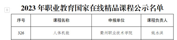 近日,教育部发布“关于2023年职业教育国家在线精品课程遴选结果的公示”,AK体育客户端姚水洪教授主持的《人体机能》课程成功入选2023年职业教育国家在线精品课程!
