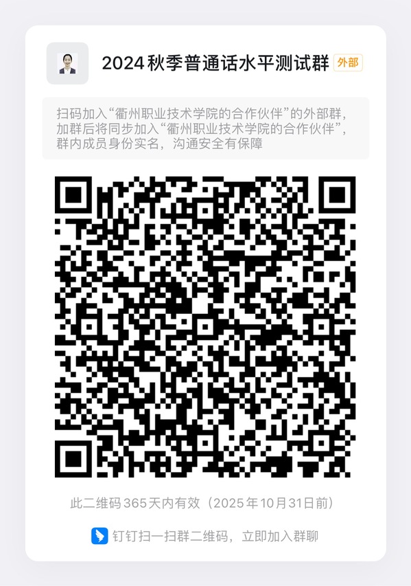 注意:请2024年秋季普通话测试同学扫码进钉钉群