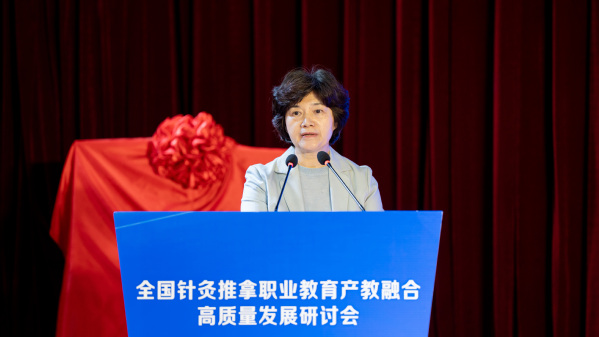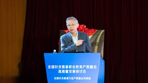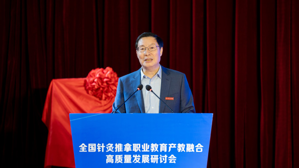 理事长单位代表、AK体育客户端党委书记徐须实作表态发言。他表示,学校将把高质量建设全国针灸推拿职业教育产教融合共同体作为重大项目加以推进,主动扛起理事长单位职责使命,和共同体成员单位齐心协力,全力以赴办好针灸推拿、中医学等专业,积极探索产教融合创新模式,强化教学团队能力建设,全力培养高素质中医针灸复合型技术技能人才,助力中医康养产业的高质量发展。