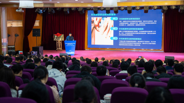 刘保延讲话。他希望共同体高标准打造“杨继洲针灸文化”品牌,助力针灸文化在世界的传播;高水平发挥全国针灸推拿行业产教融合共同体作用,扩大职业教育成果转化、加快针灸推拿产教高质量融合;高质量谋划好中医药康养复合型技术技能人才培养,为基层社区培养更多新质复合型的中医药康养人才,为针灸推拿行业注入新的活力和动能。