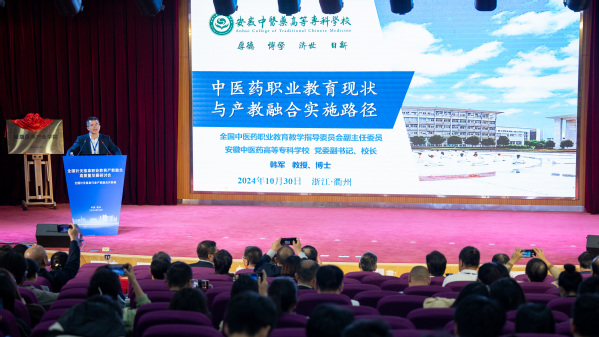 韩军作题为《中医药职业教育现状与产教融合实施路径》的主旨报告。