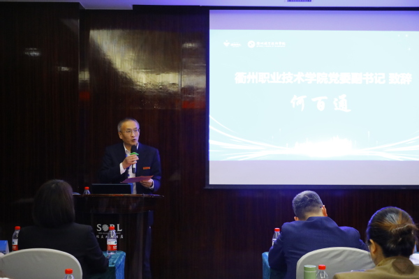 会上,校党委副书记何百通对温州校友会的成立表示祝贺并致辞。他指出,在广大校友鼎力支持下,学校建设发展取得长足进步。特别是近年来,学校围绕创“双高”、强服务、育人才工作主线,深入实施“六个一批”服务地方发展专项行动,深化复合型技术技能人才培养改革,推动学校事业取得历史性成就、发生历史性变革,学校高质量发展迎来光明前景。他强调,长期以来,广大校友身在四方却始终心系母校,以各种方式反哺母校、支持母校发展。广大温州校友扎根地方,在各自战线上建功立业,展现衢职的风采,发扬衢职精神,服务温州地方发展。温州校友会的成立,是母校情的延续、校友情的汇聚、跨地域的联合,开创了校友与母校、校友与校友情谊相连、发展与共的新路径。他希望校友们多联系、多走动、常回母校看看,用大家的精诚合作,助力母校谱写事业发展新篇章。