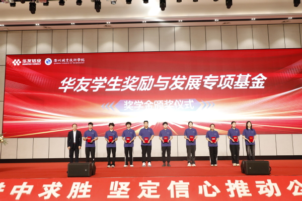 黄利俊总经理、穆金泉总经理为获得华友新材料学院专项奖学金的学生代表颁奖。