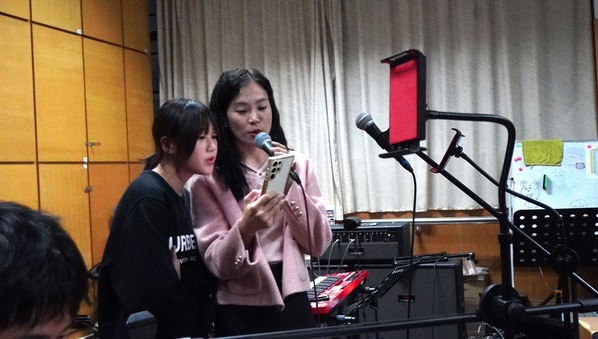 在与衢职大学生“情绪计划”乐队交流互动中,衢职院学生通过流行音乐演唱和乐队表演与青年师生分享社团学习的成果,展现了衢职院学生们积极向上、朝气蓬勃的青春气息。