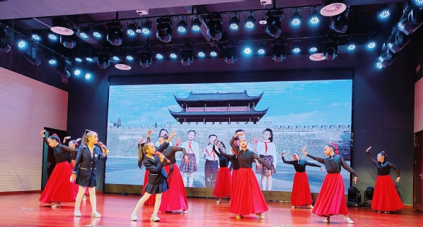 宣讲结束后,柯城区白沙小学合唱团与舞蹈团联袂带来了令人难忘的歌舞表演《万疆》。舞台上,孩子们用清澈的歌声和灵动的舞姿,表达了对祖国深沉的爱与祝福,将现场气氛推向了高潮。