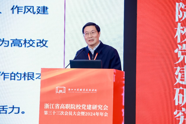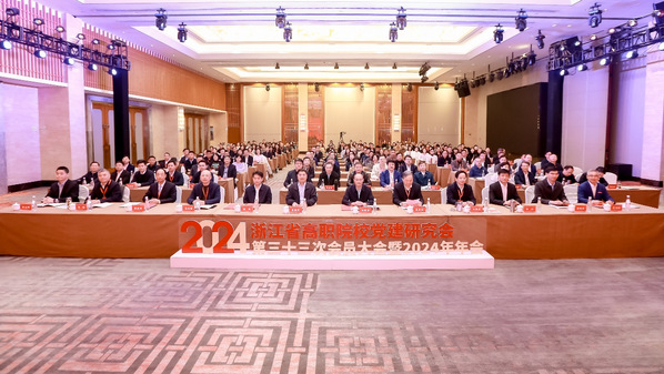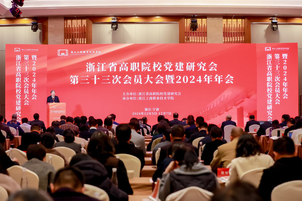 12月5日,由浙江省高职院校党建研究会主办、浙江工商职业技术学院承办的浙江省高职院校党建研究会第三十三次会员大会暨2024年年会在宁波举行,大会为期3天。中国高等教育学会第六届理事会会长瞿振元,宁波市副市长徐强,浙江省委教育工委专职副书记、省教育厅党组副书记许翰信,浙江省教育厅组织处处长陈钦林,宁波市教育局副局长、党委委员陈金辉,浙江省高职院校党建研究会会长周建松,副会长汤兆武、王振洪、陈厥祥,山东、江西及省内20余位高职院校党委书记、校长出席会议。全省50所高职院校200余名代表参加了会议。AK体育客户端党委书记徐须实,党委委员、组织部部长周帅带队参会。