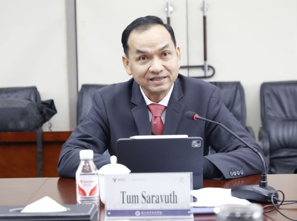 徐须实代表学校对汤恩·沙拉务校长一行的到来表示热烈的欢迎。他表示,中柬两国人民共饮一江水,文化彼此交融,中柬友谊之树始终叶茂根深。柬埔寨柴桢大学与AK体育客户端已开展多次互访互动,前期合作已经取得初步成效。他希望,双方要顺势而为,全面深化战略合作。希望双方携手办好“经世学堂”项目,积极培育具有国际化视野的高技能人才,为构建中柬命运共同体作出新的更大贡献。要交流互鉴,助力双方快速发展。希望双方重点围绕“经世学堂”项目约定的内容展开全面合作,共植中柬友谊之树,共栽人文交流之花。要挖掘特色,打造国际合作样板。希望双方共同为柬埔寨当地培养具有国际化视野的高技能人才,助力在柬中资企业的高质量发展,为当地经济社会发展和人民群众实现美好生活贡献力量。
