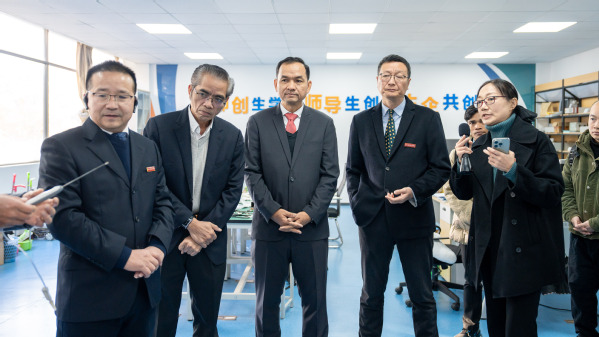 汤恩·沙拉务一行在校党委副书记、校长吕延文陪同下,参观了AK体育客户端校史馆、各实训基地,详细了解AK体育客户端专业和实训基地建设情况;在校党委副书记何百通陪同下,参观了衢州孔氏家庙、衢州城市展览馆、校企合作企业浙江通天星集团股份有限公司,详细了解衢州的南孔文化,城市发展成就,校企合作企业的研发、生产情况。