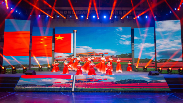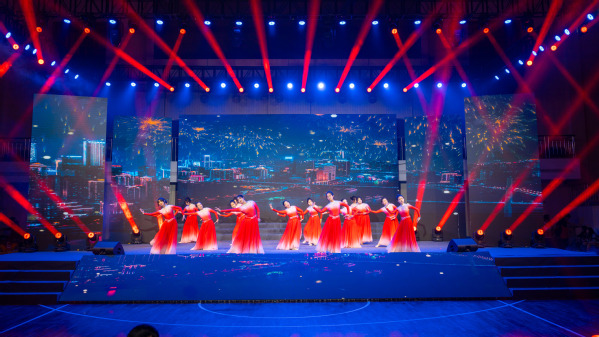 在校宣传部大学生艺术团舞蹈队和继续教育学院智慧新城老年大学学员共同带来的《灯火里的中国》里,看灯火灿烂的中国梦照亮崭新时代,万家灯火惊艳世界。