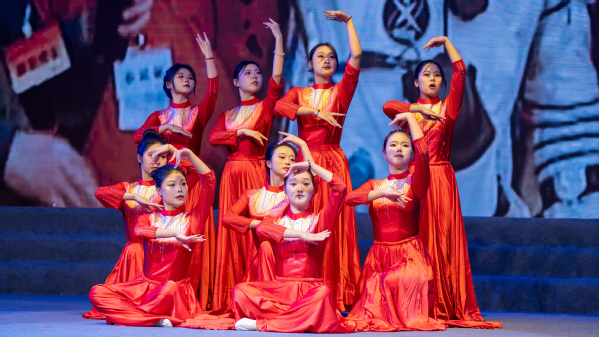 穿越百年,仰望苍穹,盛世景象正如先辈所愿。我们用歌声缅怀过去,展望未来,让青春与梦想在此刻交织共鸣,艺术设计学院的师生们带来歌舞《如愿》。