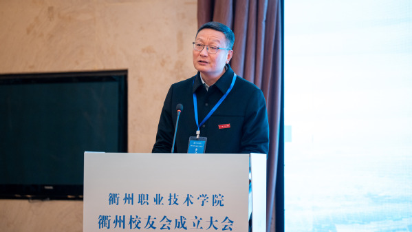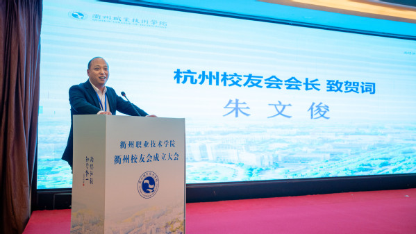 衢职院杭州校友会会长朱文俊致贺词。