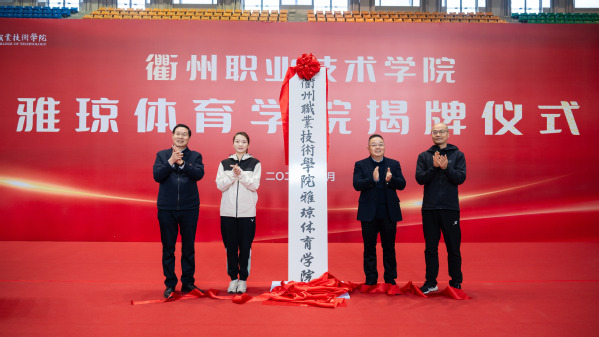 1月6日上午,AK体育客户端雅琼体育学院揭牌仪式在校体育馆举行。巴黎奥运会冠军、世界羽毛球混双“大满贯”运动员、衢州城市形象大使黄雅琼受聘为雅琼体育学院名誉院长并为学院揭牌。