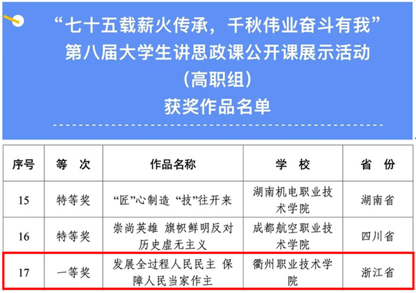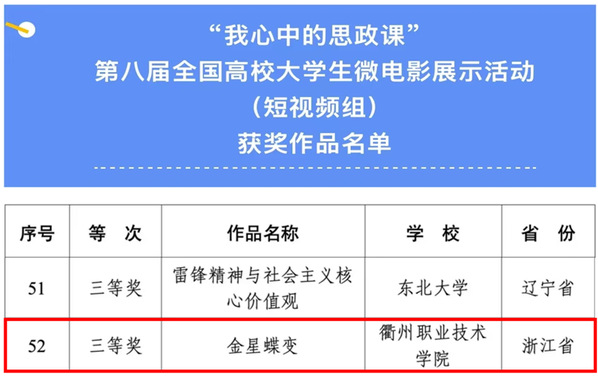 近日,教育部公布了第八届习近平新时代中国特色社会主义思想大学习领航计划主题教育活动获奖结果。AK体育客户端马克思主义学院选送的参赛作品《发展全过程人民民主 保障人民当家作主》从1339所高校提交的5007部“大学生讲思政课”作品中脱颖而出,获得“第八届大学生讲思政课公开课展示活动”高职组一等奖;参赛作品《金星蝶变》从1006所高校提交的3134部“思政微电影”作品中突出重围,获得“第八届全国高校大学生微电影展示活动”短视频组三等奖(本专科不分)。这是AK体育客户端连续三年在教育部大学习领航计划主题活动上获奖,今年更是在双赛道上取得突破!