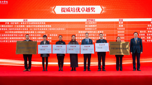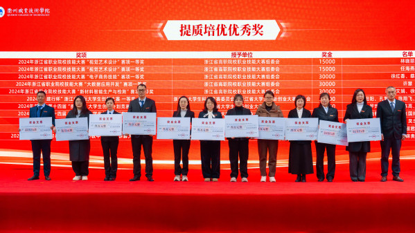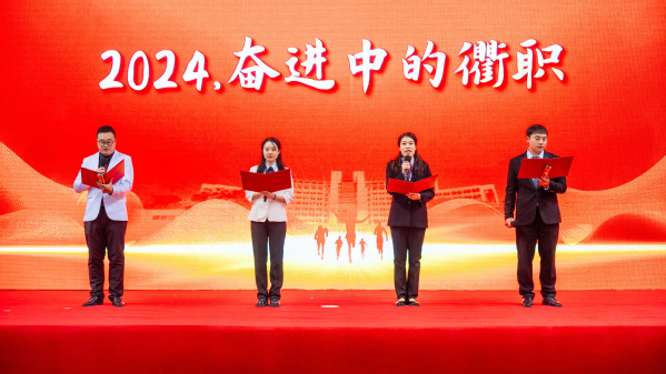 青年教师以《2024,奋进中的衢职》为题,回顾了过去一年学校在创“双高”、强服务、育人才等方面取得的累累硕果。大会对2024年获“强基固本”“增值赋能”“提质培优”三大类国家级、省级奖项和荣誉的优秀团体和个人进行了隆重表彰。