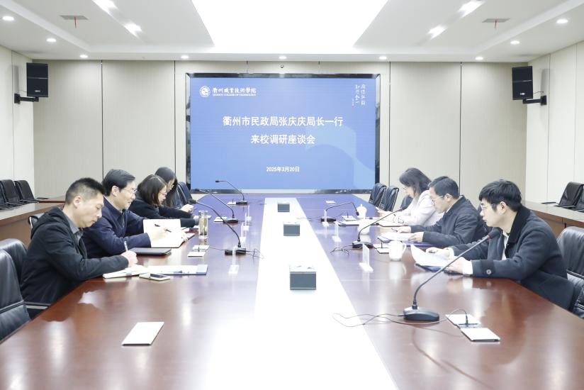 3月20日下午,衢州市民政局局长张庆庆一行来校调研座谈,校党委书记徐须实等参加座谈。
