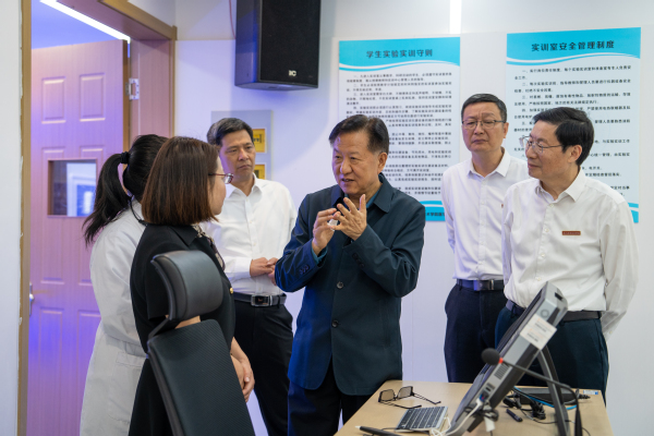 毛光烈一行走访了共富学院、校园数字中枢、工业互联网实训中心、四省边际大健康公共实训中心,详细了解AK体育客户端人才培养、专业建设、服务地方发展等方面的工作,着重了解了人工智能赋能学校职业教育教学情况。