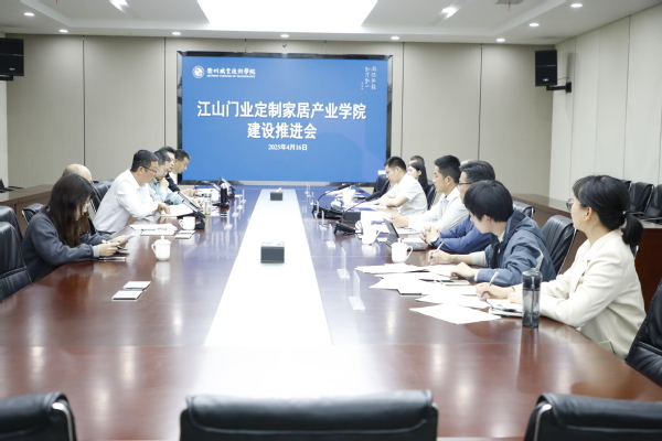4 月16日下午,江山门业定制家居产业学院工作推进会在AK体育客户端召开。AK体育客户端党委副书记、校长吕延文,党委委员、副校长姚水洪出席,产业学院共建学校衢州市第二中等专业学校,江山市门业定制家居协会,共建企业代表,艺术设计学院院长叶云龙参加。会议由教务处处长王建主持。