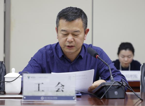 衢职院工会常务副主席黄恒荣汇报学校慈善项目工作情况。