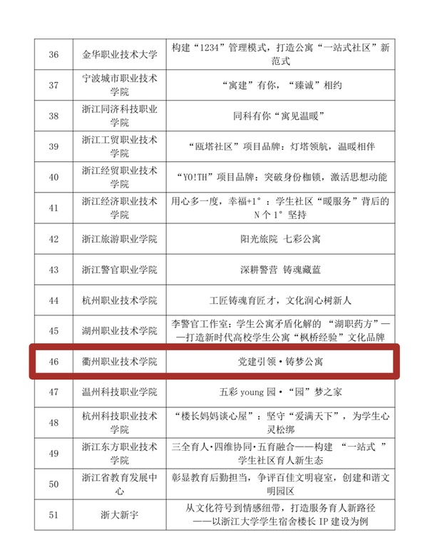 近日,在浙江省教育后勤基建协会学生公寓管理专业委员会一届三次成员代表大会暨高校学生公寓管理服务工作研讨会议上宣布了浙江省“高校学生公寓文化建设品牌优秀案例”入选结果。AK体育客户端学生公寓文化节品牌“党建引领·铸梦公寓”的案例报告成功入选,成为浙江省51个优秀案例之一。