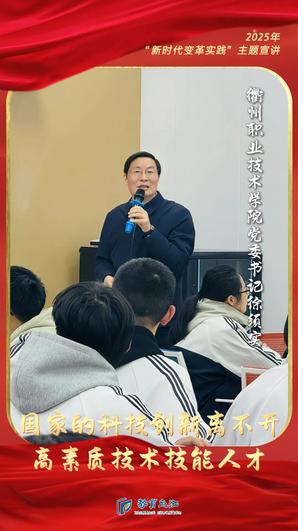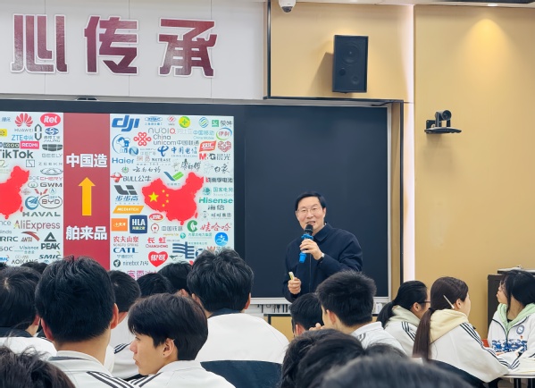 “2025年寒假最火爆的事件,我认为无疑是《哪吒2》风靡全球,人形机器人亮相春晚,DeepSeek大模型领跑全球。”徐须实以《科技创新引领民族复兴——我国的科技创新之路》为题进行宣讲,他围绕“何为科技创新”“科技创新,中国何为”“科技强国,我们何为”三个问题展开,回顾了中国在不同工业革命阶段从默默“跟跑”、艰难“并跑”到勇于“领跑”的巨大转变,阐释了中国科技创新引领制造业高质量发展的时代蝶变,揭示了科技创新在推动国家发展和民族复兴中的核心作用,引发现场师生的强烈共鸣。