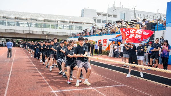 百人拔河对抗赛更是高潮迭起,七个二级学院各派出100名选手参赛,每轮比赛均有200人上阵,累计参与人数达700人。哨声一响,两支队伍迅速进入状态,双手紧握麻绳,齐心协力,观众席上的呐喊助威声一浪高过一浪。经过多轮较量,最终前三名分别为:文化旅游学院、机电工程学院、医学院。