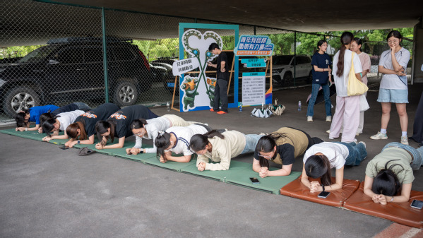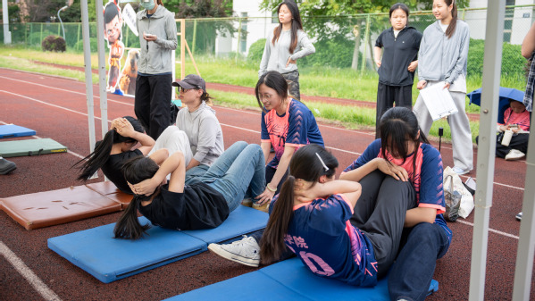 除了传统拔河赛事,趣味力量挑战赛同样热闹非凡。双人拖消防车的选手紧握绳索,步伐一致拖曳着消防车稳步前移,绳索绷直如弓弦,默契在汗水里绽放;平板支撑的“硬汉”们咬牙坚持,肌肉紧绷如雕塑,滴落的汗珠在地面砸出专注的印记;引体向上的单杠下,欢呼声随身体起落起伏,仰卧起坐的垫子上,腰背屈伸间是青春的利落;飞镖区“嗒嗒”的中靶声与阵阵惊叹同频共振,选手屏息凝神,一掷定乾坤; 立定跳远起跳瞬间划出优美弧线,腾空一刹那尽显青春张力;翻轮胎的赛道上,厚重轮胎在掌心翻滚,选手们涨红的脸庞写满不服输的倔强;跳绳区彩绳翻飞似银蝶,脚尖点地如踏鼓点,速度与节奏在1分钟内尽情燃烧。从力量的直接较量到技巧的精准把控,从个人突破到团队协作,这场融合趣味与热血的挑战赛,让每个跃动的身影都成为操场上最耀眼的光,诠释着“拼搏即精彩”的青春宣言。