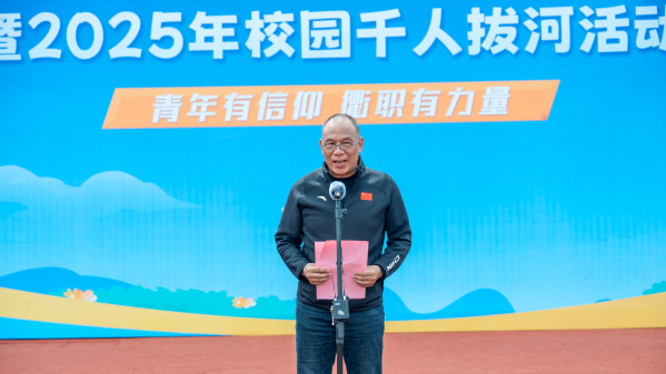 崔同在致辞中表示,拔河运动对激发团队意识、塑造团队精神、树立集体主义观念具有显著效果。它能增强人与人之间的理解、包容、支持和信任,使大家在一根绳上凝聚一条心,共同迎接挑战,展现敢于拼搏、勇于胜利的精神风貌。他希望通过本次千人拔河大赛,能够凝聚全体师生的共识,推进集体主义教育,让拔河运动承载的优秀文化在新时代焕发出新的光芒。