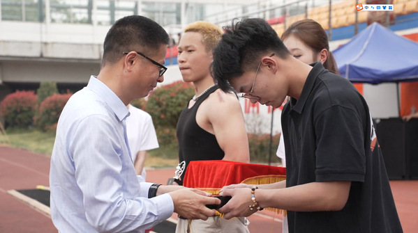 徐须实为“百人拔河对抗赛”前三名团队文化旅游学院、机电工程学院、医学院颁奖。