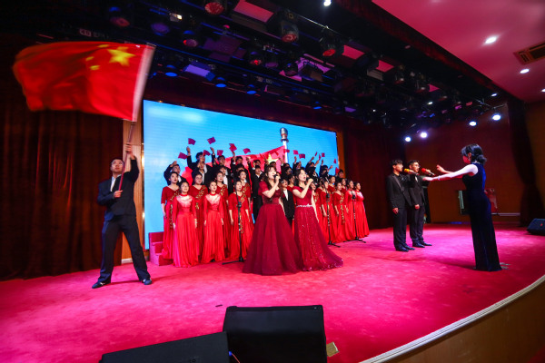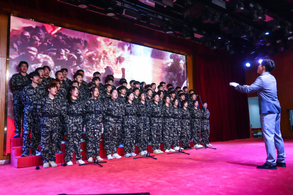 华友新材料学院24化工装备2班通过《我爱你中国》的合唱与朗诵结合,深情表达对祖国的热爱,并以实际行动诠释科技报国的使命担当。