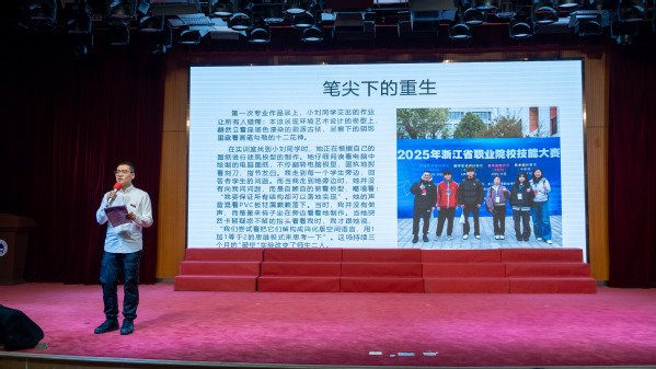 江达飞老师通过《以赛促学育匠才,产教融合谱新篇》的故事,展现了他在职业教育的舞台上,敢于突破传统职教模式的束缚,将竞赛的活力与产业教育深度融合,用创新为职业教育注入蓬勃生机的育人实践。