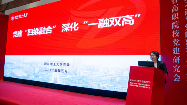 浙江理工大学党委副书记姚珺以《党建“四维融合”深化“一融双高”的浙理模式》为题作专题报告。报告从浙江理工大学党建“四维融合”的实践探索出发,深刻阐释了浙江理工大学对“一融双高”的思考与特色做法,为高校改革创新党建工作,持续提升党建水平,提供了坚实的学理支撑和有效的现实路径。