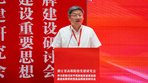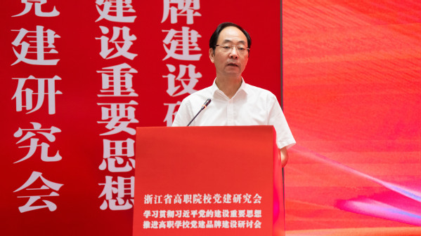 衢州市人民政府副市长邵潘锋致辞。他表示,一直以来,衢州市委市政府高度重视职业教育发展,以市域一体化职教体系打造全国职业教育创新高地,努力打造职业教育高质量发展的“衢州样板”。在扎实推进中央八项规定精神学习教育的关键时期,全省高职院校党建品牌建设研讨会在衢召开,既是对衢州高职院校党建工作的充分肯定,更彰显了新时代党建引领职教发展的使命要求。期待本次会议汇聚思想之光、共筑实践之路,以党建品牌建设为纽带,撬动示范创建与质量创优协同并进,将党建引领的组织优势加速转化为服务地方发展的育人动能,为衢州“工业强市、产业兴市”战略培育更多德技并修的高技能人才。