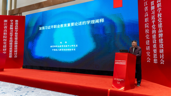 教育部职业教育发展中心研究员、中国成人教育协会副秘书长、职业教育质量与评估研究会副理事长赵伟以《加强习近平职业教育重要论述的学理阐释》为题作专题报告。报告紧扣习近平总书记关于职业教育的重要论述,从理论与实践的角度进行学理阐释,内容深刻、鞭辟入里,令人深受启发。