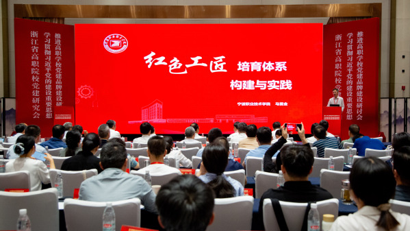 宁波职业技术学院党委副书记马苗金作题为《“红色工匠”培育体系构建与实践》的经验分享。